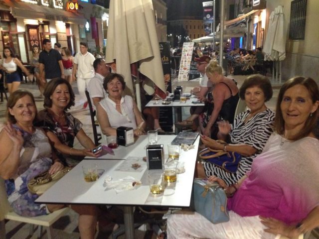 で。「マラガ熟女の女子会」がこちら!(五枚目)。オーレ!私などまだ、ひよっこ。扱い。笑顔のすてきな先輩方にエネルギーもらいつつ、ビールで乾杯。