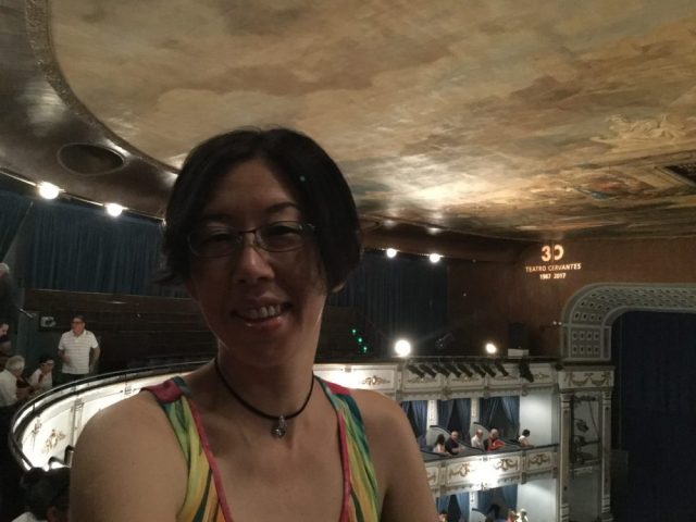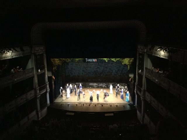 入場料は、一番高いプラテアで32ユーロ。と、けして高くない。が、私たち庶民には高嶺の花。なので、三階席まで階段を歩いて昇る。はぁはぁ。いつもたどり着くとふらふら。冷房もあんまりきいていない。