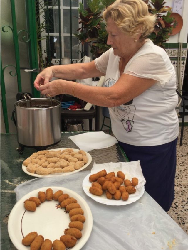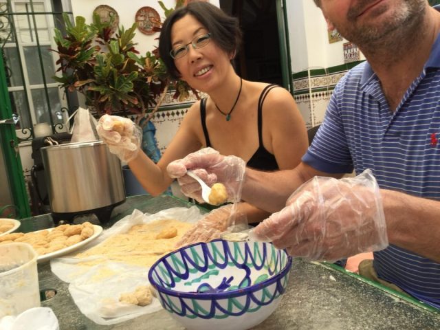 今日は、マラガ風「手作りコロッケに挑戦!」の話です。この日の会場はプーラさんのお宅のパティオ。そう、中庭です(写真1~3枚目)。自然光がいい感じ~。