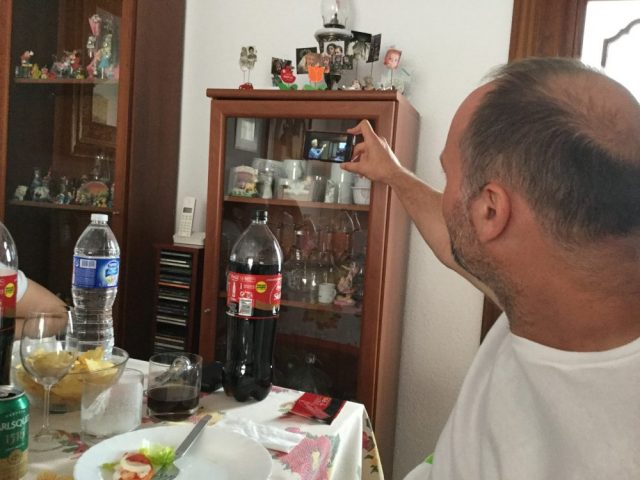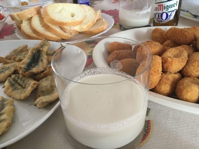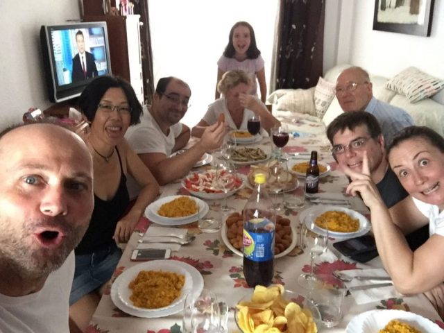 さて、揚げたて熱々のコロッケ&イワシをお待ちかね!のみなさん。家族集合写真がこちら!(五枚目)。表情豊かだな~(笑)。おおざっぱで大らかなマラガの人たち。この日は、「アホブランコ」や「パエジャ」もテーブルに並びました(6,8枚目)。