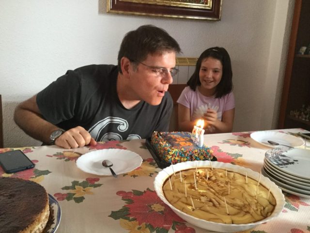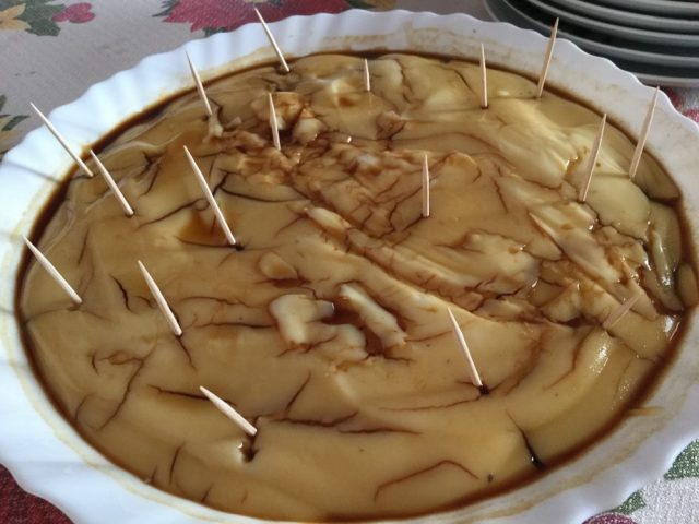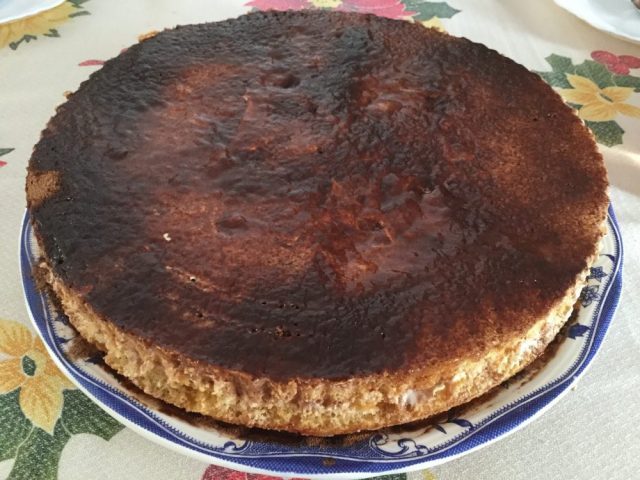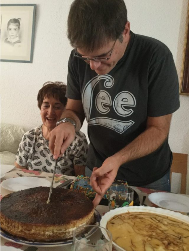 お食事会にお呼ばれすると、スペインでもふつう何かを持参します。この日私は日本のお土産とお菓子、プーラさんに鉢植えの花。ところがそれ以外のみなさんは、すべて「ケーキ!」。だったのでいきなり