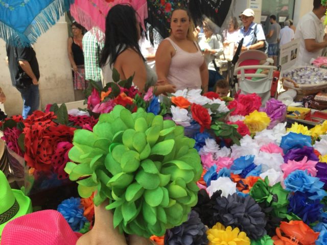 まずは「頭につける花」を買いましょう。女性にはこれは必須アイテム。お店がたくさん出ているので、その日の服に合わせてみてはいかが。2~3ユーロで買えます(一枚目)。