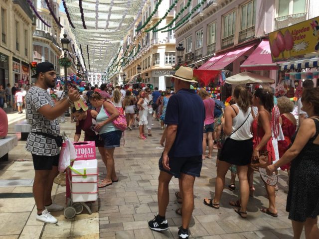今日から始まる「マラガのフェリア(夏祭り)」報告シリーズ。初日はまず軽くセントロを散歩から。フェリアめぐりの王道は「ラリオス通りの正面門」で集合。この門をくぐって入る!(写真二枚目)
