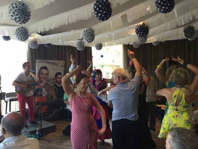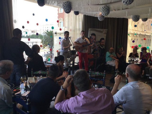 後半はカセータやレストラン、ホテルなどに設けられた「セビジャーナススポット」へと向かう。みなさん、踊ってます(十三、十四枚目)。私たちももちろん参加。ライブ演奏もあり、至福の時。