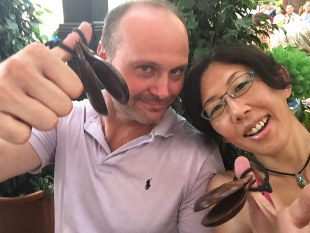と、先生の掛け声に合わせて軽やかにカスタネットも披露。かっこいいー。私は手にはめて、拍子をとってるだけ。ハビ吉も家中をひっくり返してカスタネットを探し出してきた。