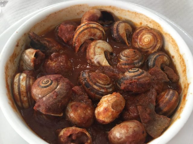 すぐに決まるのがいいところ。早めにレストランに入ったのが大正解。お店のまん中の大テーブルを陣取る。予約なしで。さっそく注文。えび、カタツムリ、コロッケ、魚のフライ・・・これが、冷えた白ワインによく合う。