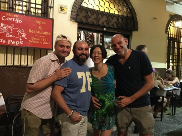 割り勘にして、これで一人10ユーロ程度。大満足でお店を出る。そしたら、あらま。他の友人グループと遭遇。通りで再びおしゃべりが始まる。ほんと、マラガって狭いな。出かけると必ず、誰かに出会う。