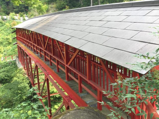 谷間に架けられた「赤い橋」も情緒あり(四枚目)。フォトジェニック。向こう側へ降りて行くこともできますが、私たちは橋の上で記念撮影して出口へと向かう。さすがに、帰り道は下りなので早い。苦あれば楽あり。