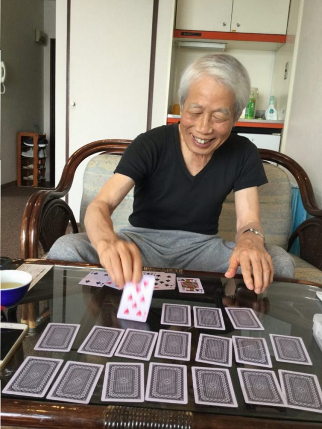 まずはお茶を飲み、休憩がてら始まる「親子トランプ大会」(うちの家族はゲーム好きなんです)。七並べ、ババ抜き、神経衰弱・・・。どれだけゲームを変えても、なぜか父が圧勝(十三枚目)。なぜ。日本にいるから?地元の霊に守ってもらえるの?スペイン帰りには負けないわよ、みたいな?