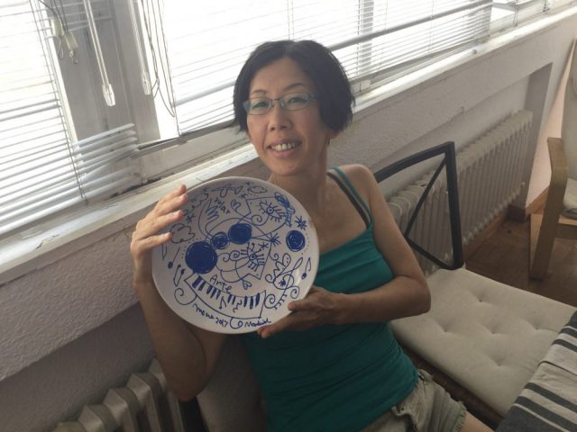 手渡されたまっ白の陶器は、光り輝いて見えた。大きさも手ごろ。平皿で描きやすそう。