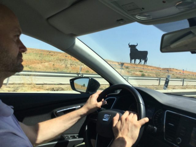 マドリッドに向けて再び出発。あっ、スペインをドライブするみなさん、アウトビア脇にあちこちに建てられている「闘牛の看板」を探して見てください(九枚目)。乾いた大地に黒いシルエット。青空を背負って。これぞスペイン。オーレ!