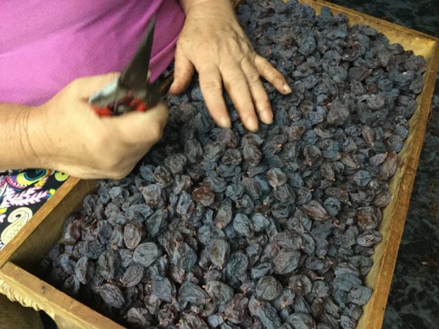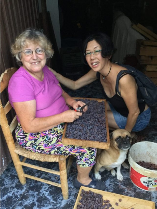 この一帯はマラガ県内でも「ほしぶどう」で有名。ご覧の通り村に入ってすぐ、ほしぶどうの収穫作業をするセニョーラに出会いました(二、三枚目)。そばにぴったりとくっついて離れない犬ちゃんもかわいい~。
