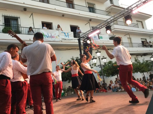 村の中心となる広場では、この日のために舞台が特設され、踊りや音楽のショーが続く。オーレ!(六、七枚目)。立ち見ですが、舞台のすぐそばまで近寄れるのでライブ感いっぱい。ベルディアーレスの演奏や踊り、フラメンコなど夜の12時まで続きます。