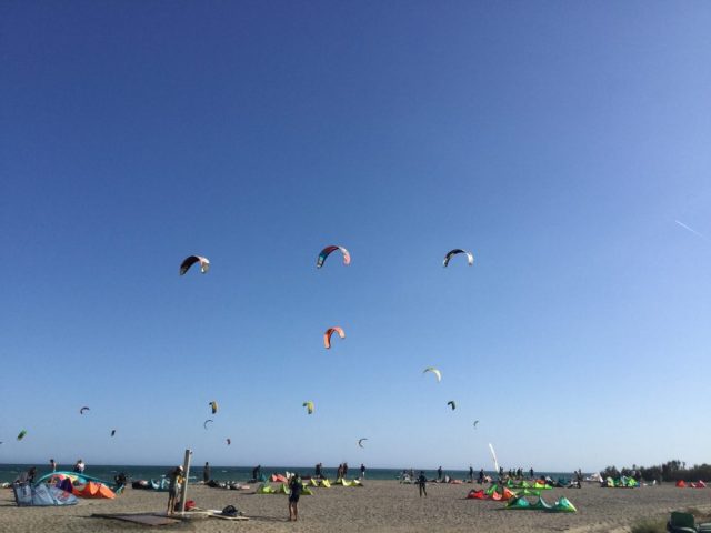 さて、ランチの後は海へ。これもマラガっ子の定番コース。泳ぐ人は少なくなったけど、ビーチはスポーツを楽しむ人でいっぱい。海岸通りのカフェテラスはもう満員。