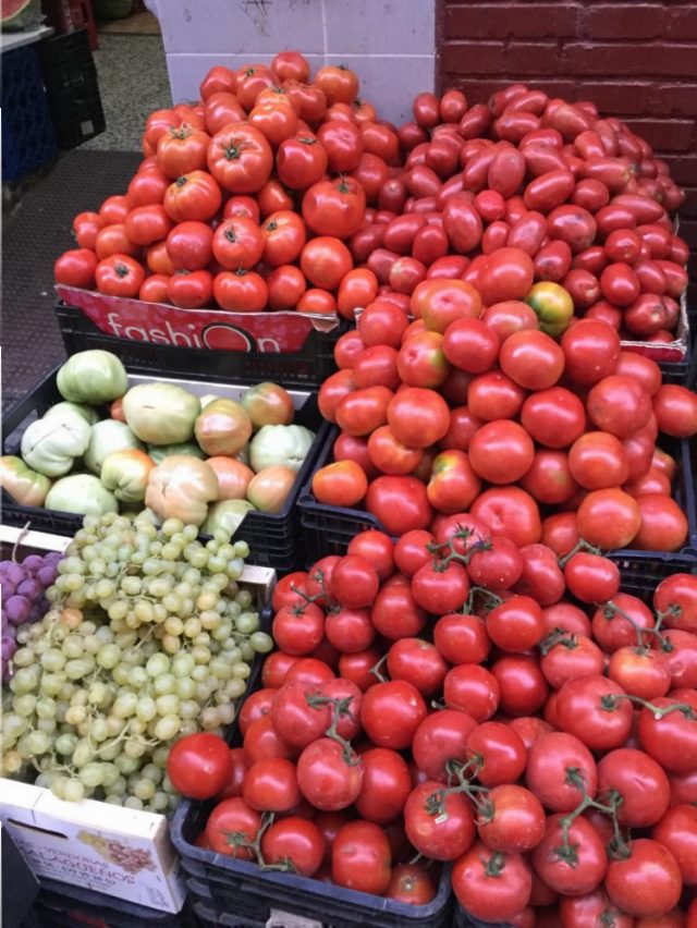 を紹介します(写真)。ぷりぷり~。おいしそー。スペインでは一年中食べられるトマト。常時5,6種類あって、用途によって使い分けられます。