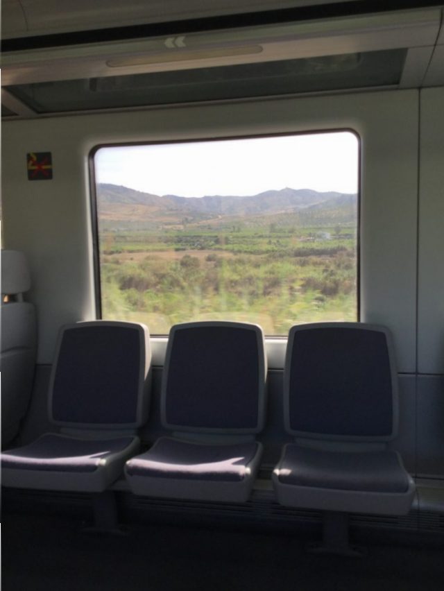 まずは、マラガ駅から電車で約四十分。車窓に映る田舎の景色がゆったりのんびりいい感じ~(写真二、三枚目)。