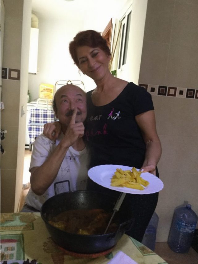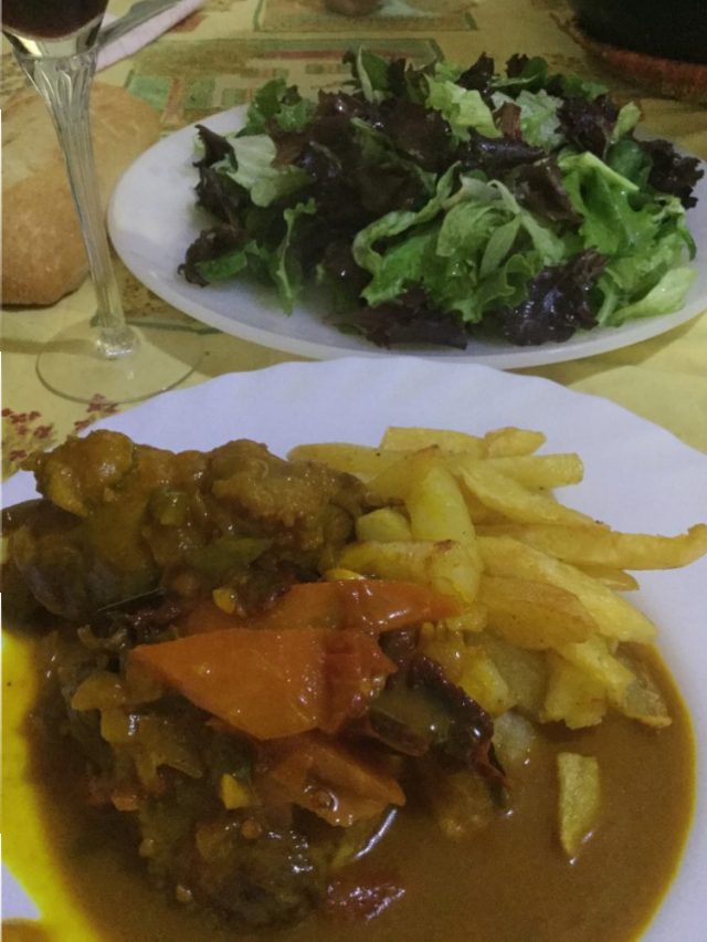 美しい奥様のエンカルナが、手料理をふるまってくださいました。蒸しムール貝、カリジャーダ(ほお肉の煮込み)、サラダなどすばらしいごちそうがテーブルに並ぶ~(五、六枚目)。赤ワインで乾杯!