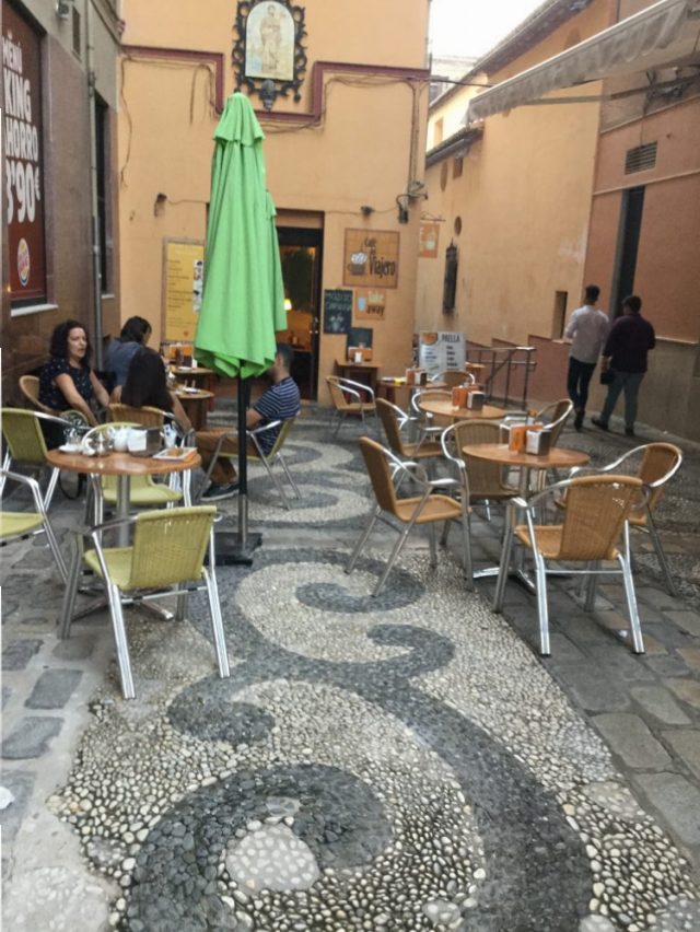 マラガのセントロ旧市街には、こうした「テテリア」がいくつもあります。が、そのほとんどが細い裏通りに、ひっそりとたたずんでいて雰囲気よし!