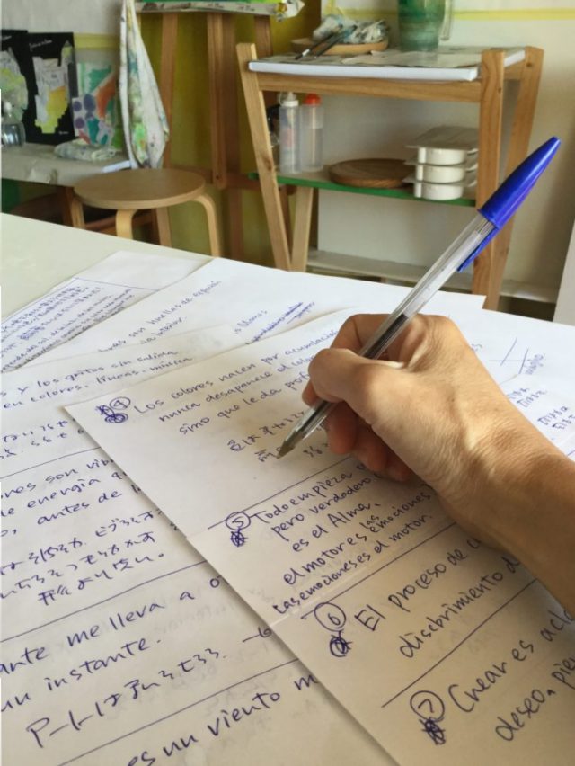 すべてが私の頭の中にあり、あるいはスペインで友人たちと行っていることなので、スペイン語から日本語に転換する作業が必要。