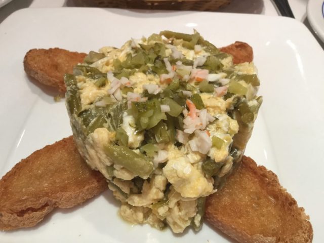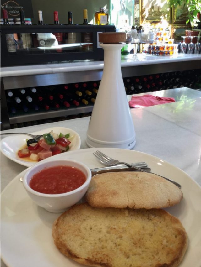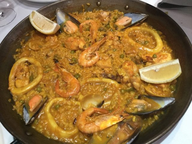 パエジャを待つ間、前菜を二品注文。これをつまみながら白ワインで乾杯!(六~九枚目)。四人でボトル一本。あっという間(笑)。おしゃべりに花が咲く~。