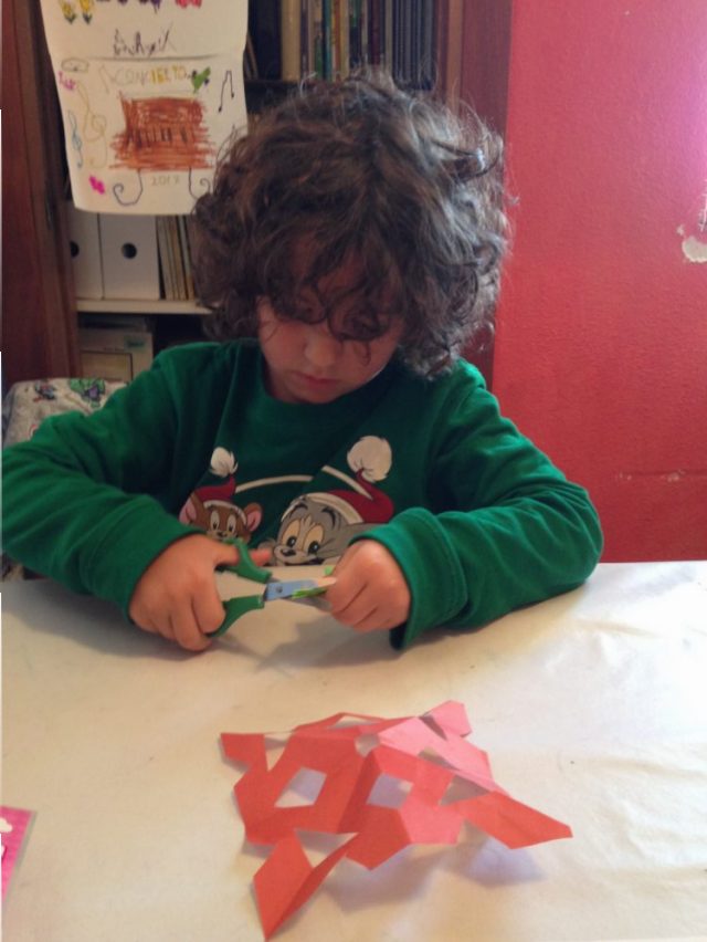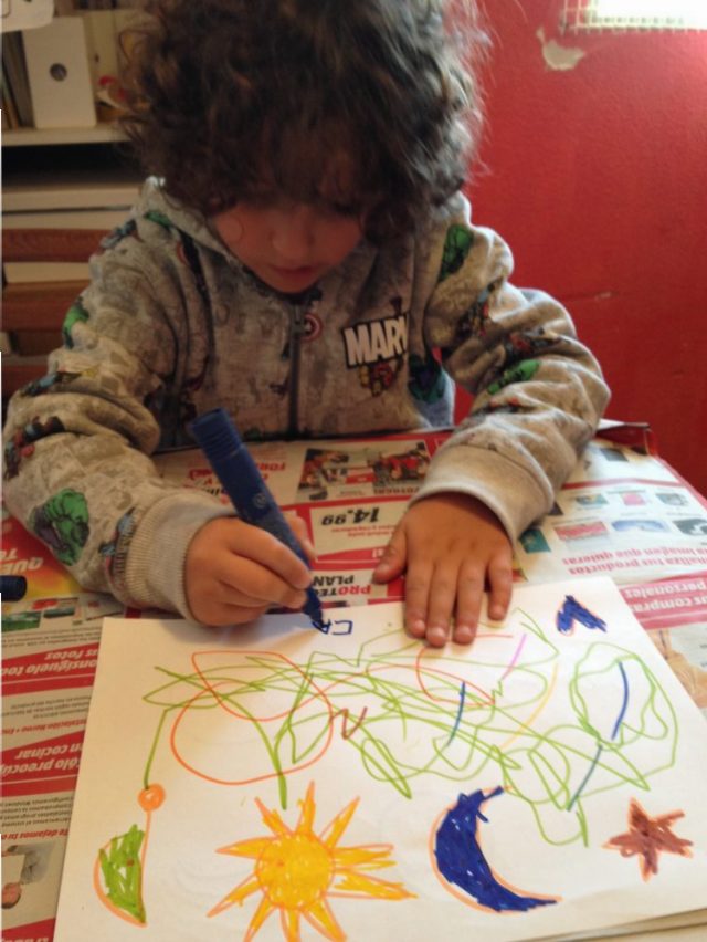 三歳~五歳の子供たちにはまず、手を動かしてもらうために、描いたりハサミで切ったり、折り紙をしたり。なんでも取り入れます。