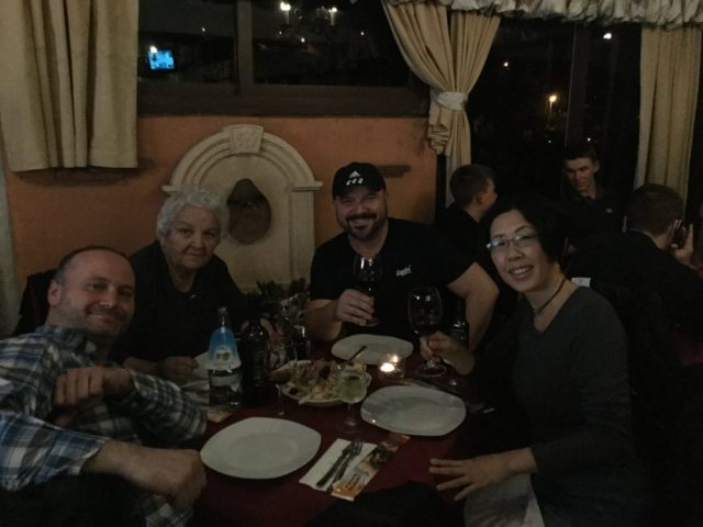 さて、この日の新年会のメンバーはダビー、アウローラ、ハビ吉。まずはイタリアワインで乾杯。それぞれ一品ずつ頼み、シェアすることに。レッスンの疲れでどうにも言葉が少ない私を見て、ダビーがぽつり。