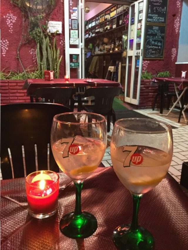スペインはアルコールが安いので、この大振りの丸いグラスで五ユーロ。これが相場。心置きなく楽しめます。