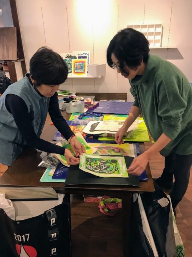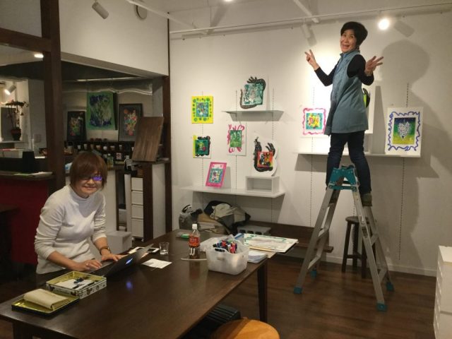 さて、今回の展示会「ルナモール」は、池下の「レンタルギャラリー2112」さんで行われました。オーナーの渡辺みゆきさんはとてもバイテリティにあふれた女性。てきぱきと搬入作業を進めてくださいます。