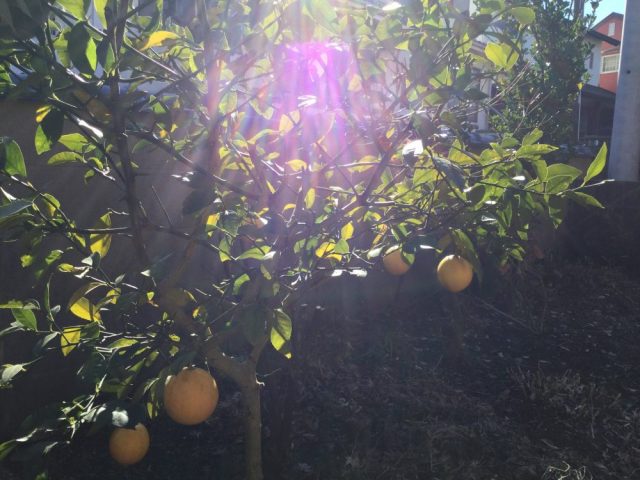 昨日の続き。母が大切に育てていた庭の「レモン」の木が、「五つ」も実をつけた。前回の帰国の際は、かわいい実を「二つ」ほど。それに比べれば、大収穫と言ってよい。