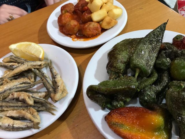 などと言いながら、まずは赤ワインで乾杯。マラガ的つまみをタパスで頼みながら、おしゃべりに花が咲く。