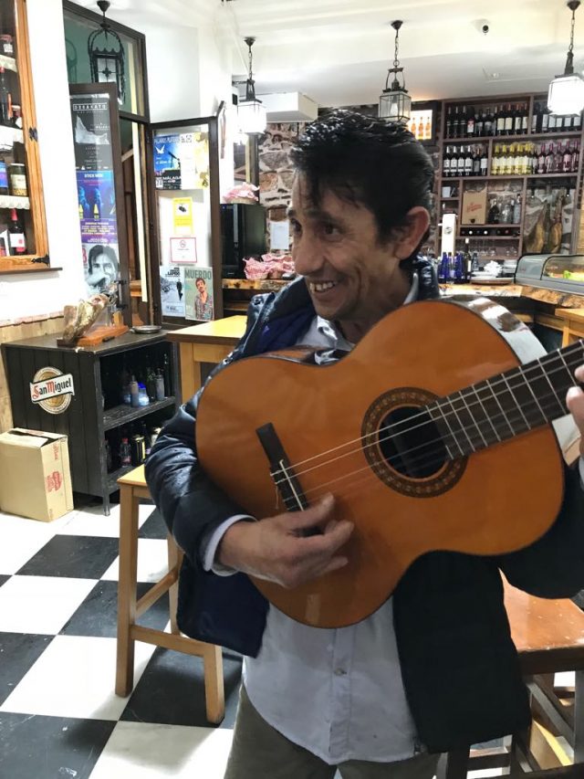 大騒ぎしていると、ギターを持ったお兄さんがフラメンコを歌いながら近づいて来た。