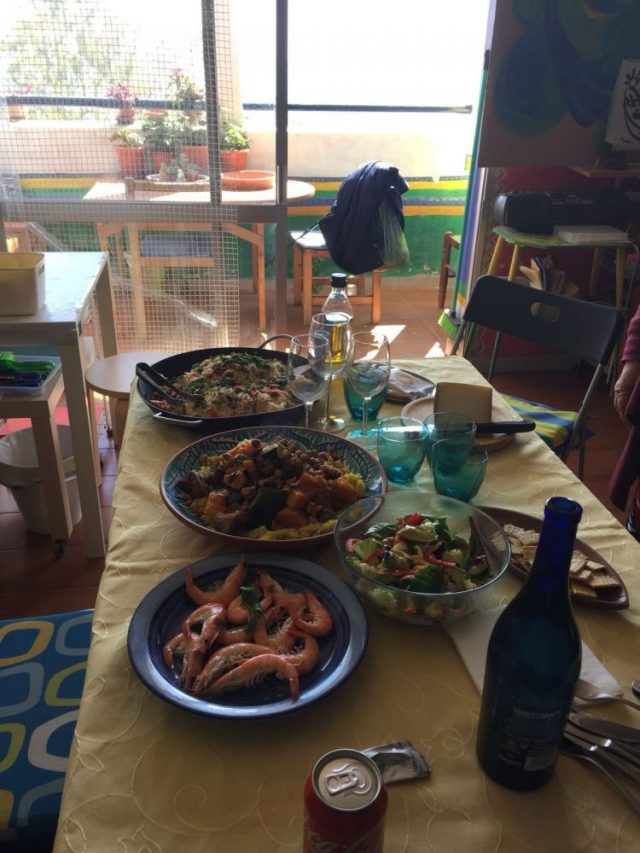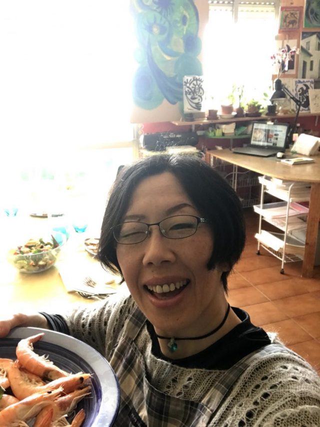ま、白ワインのボトルなど開けまして、のんびりランチがスタート。この日は風が強くてテラスランチが無理だったので、アトリエ(作業場)のテーブルが会場に早変わり。