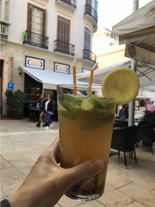 「モヒート」はマラガでは年中飲まれる人気の飲み物。ラムとレモン、ミントの葉がベースのカクテル。おいし~。でも、ぐいぐいいけるので、飲み過ぎに気をつけましょう。