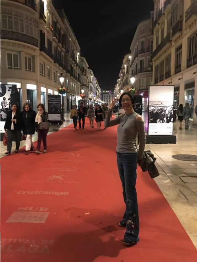 今日は「マラガ映画祭」夜編を紹介します。とは言っても、映画を観にいったのではなく、セントロをそぞろ歩き。赤い絨毯の上を歩くと、なんとなく気分が高まる~。