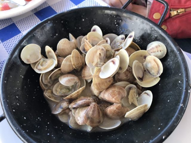 この日のお相手はカルメン。おなじみマラガの焼イワシに始まり、魚、あさり、トマト&にんにくサラダと続く。オーレ!うれしい~。