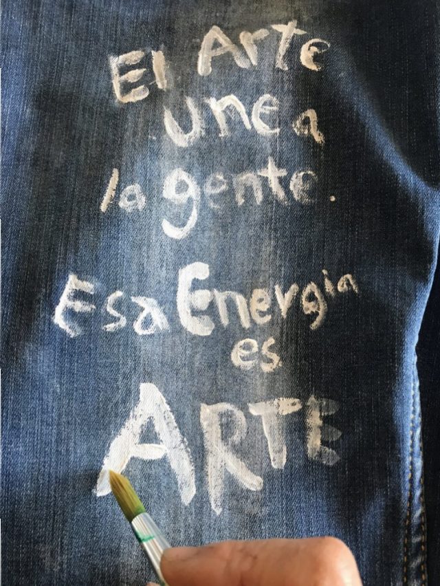 ひたすらシャツにペイント。していたのが、三日目にはさらにランニング、ジーンズ、バッグ、ネクタイ・・・と、いったいどこまでいくのか。誰か止めてほしい。