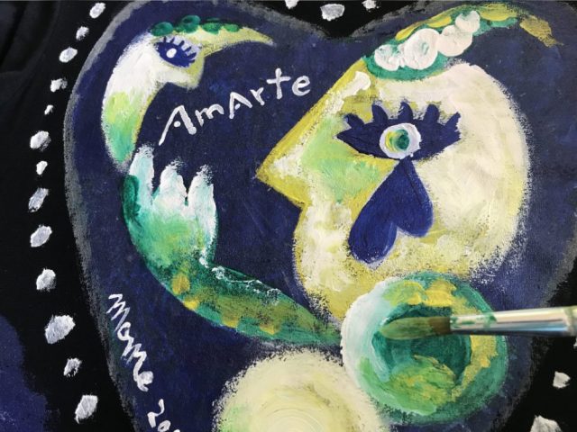 先週から始めたTシャツペイント「もも衣2018夏」。毎日、Tシャツやら、ランニングやら、手あたり次第ペイント。
