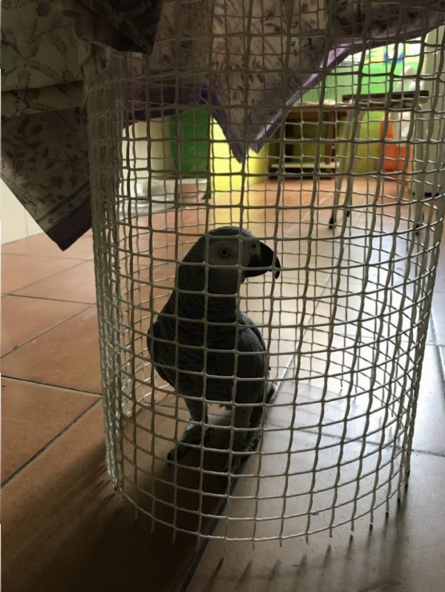 我ながら、久々のヒット。これで、わざわざ鳥かごに入れる手間もなく、瞬時にイタズラをやめさせられる。