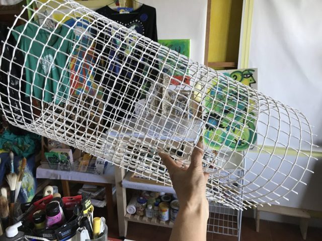網をぐるっと丸めて、針金で止めただけ。