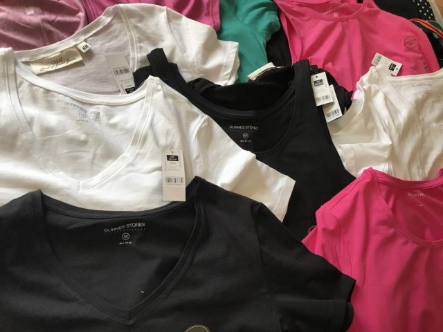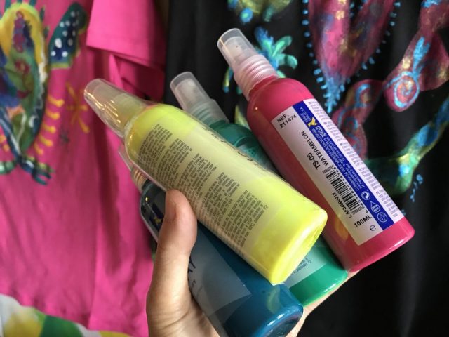 「Tシャツ10数枚と婦人服6着、布用絵の具15個、スプレー4本」