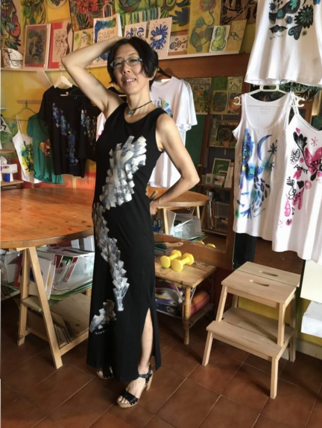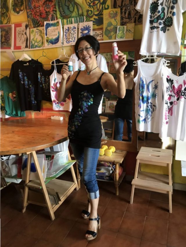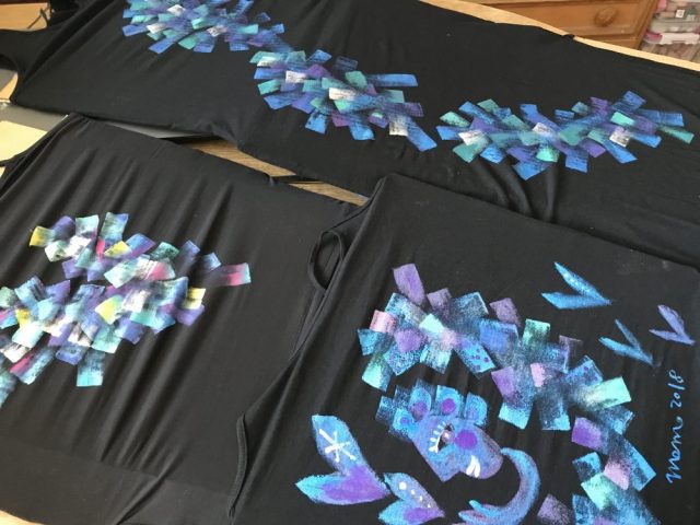 もう採算は取れないと思う。キャンバス代わりとなる服代もさることながら、これだけ絵の具を重ねて使うと、3着ペイントするごとに、1ボトルが飛んで行く。