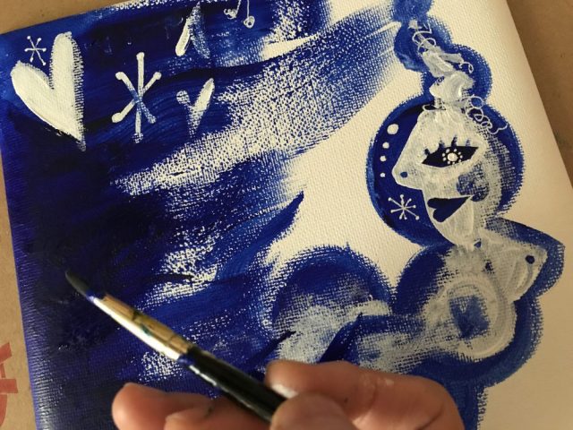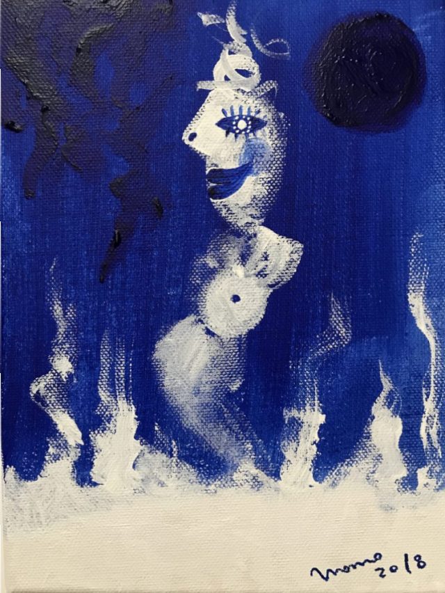 そんな中、キャンバス画も五点あります。この「地中海のベガ」のシリーズは、青と白だけで描きました。