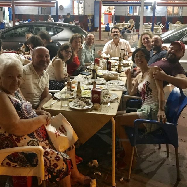 食べて飲んでおしゃべりして。話題はいよいよマラガの「フェリア」へ。明日8月11日にスタート!はたしてどうなりますことやら。