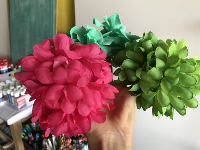 それでも今年新しく買ったのは、頭につける「花」(写真)。服に合わせて三色。ぽんぽんみたいでかわいい~。日常的につけたいくらい(笑)これからそうしようかな。