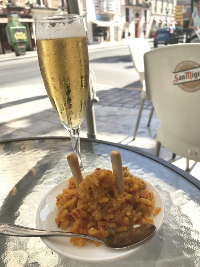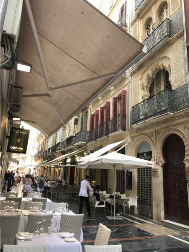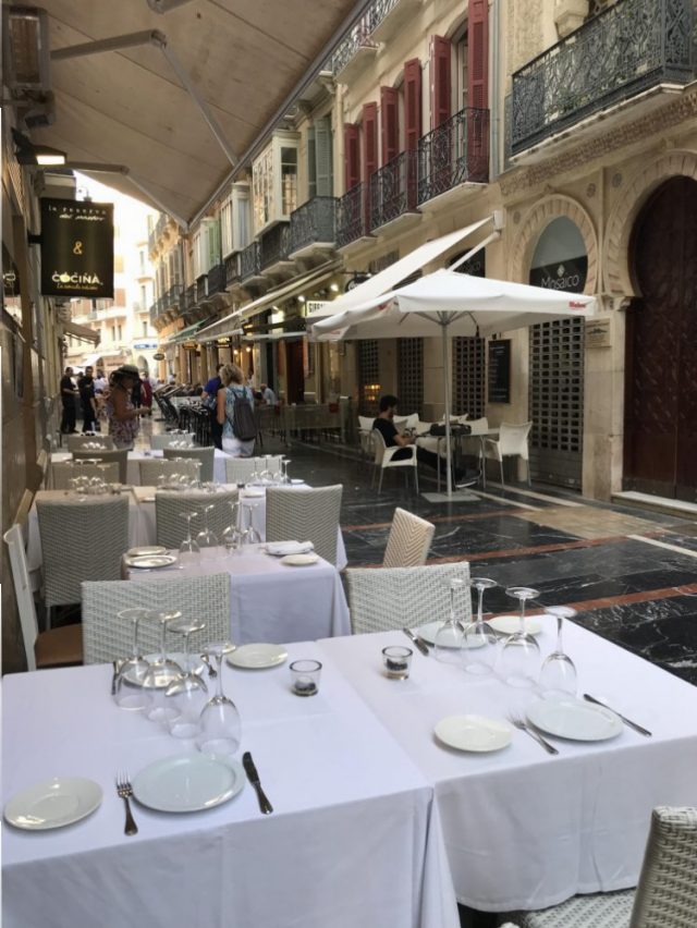 マラガでは「テラス席」が何より人気。通りに置かれたテーブルから埋まるので、バルやレストランの中をのぞくと、がらんとしていることも。