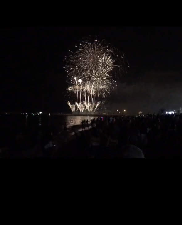 花火が上がるたび「おお〜」「ワォー」って大歓声。風情より歓喜(笑)その横でビーチで遊んでる人も。見てないのか。