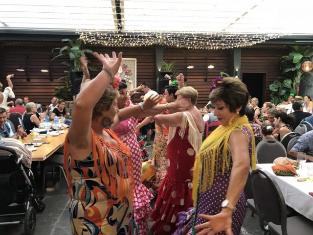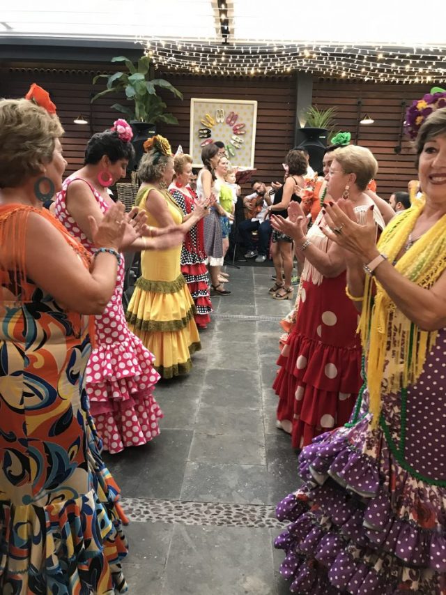 カフェテリア内の特設会場では、セニョーラ達に混ざって私たちもセビジャーナスを踊る踊る。でも写真なし。みんな踊ってるから(笑)誰も撮らない。楽しむのに全力投球。