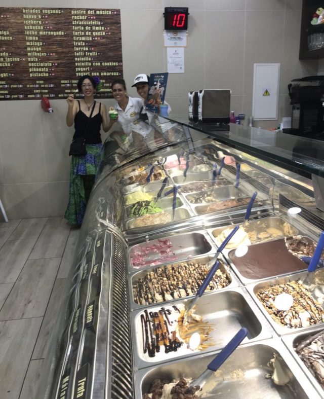これを持って、食べながら歩く。大人も子供もみんなアイス片手に歩いてます。マラガに来たらぜひ「歩きアイス」してみましょう。