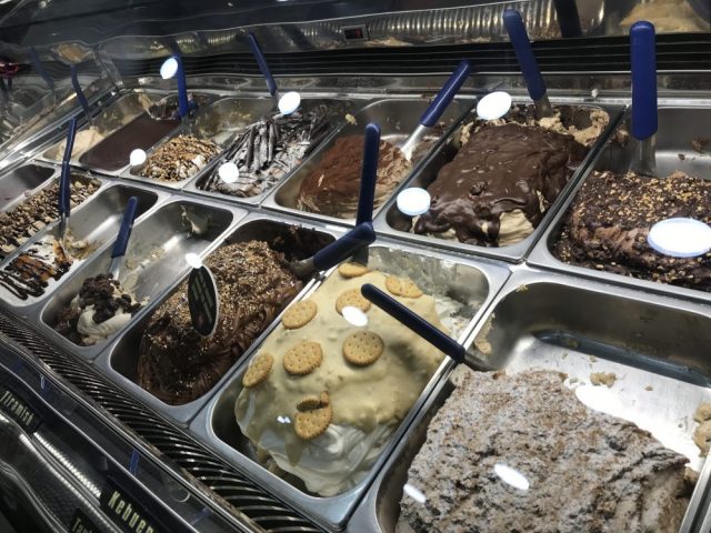 さて、アイス屋。いろいろ種類があって本当においしそう。とはいえ、甘いものが苦手な私は年に4、5回食べる程度。