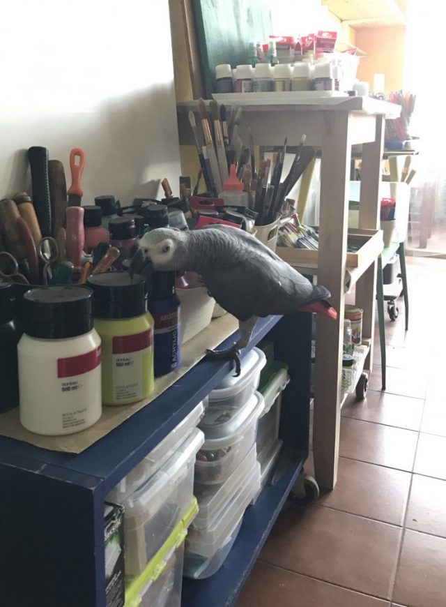 オウムにはほとほと手を焼いてます。この5月にペイントしたシャワーカーテンも食いちぎられボロボロに(涙)今カーテンなしでシャワーしてます。